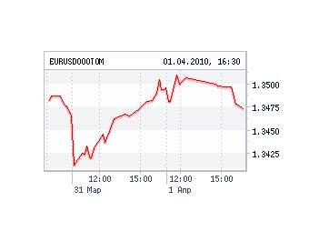 Рубль 1 апреля укреплялся только по отношению к доллару: средневзвешенный курс американской валюты за день опустился на семь копеек до 29,4 рубля. Стоимость евро почти не изменилась: эта валюта подорожала на копейку до 39,68 рубля.